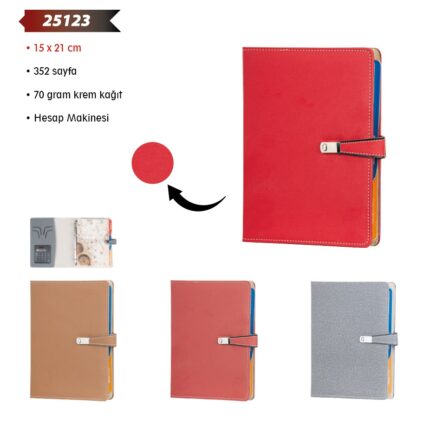 • 17×23 cm • Termo Deri • Metal & Manyetik Kilit • Hesap Makinesi • Kartvizitlik • 70 gr. Ivory