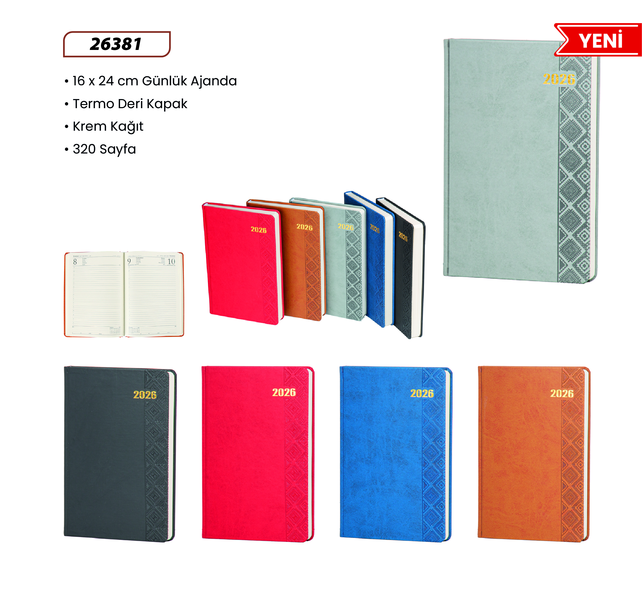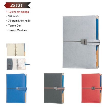 • 15 x 21 cm ajanda • 352 sayfa • 70 gram krem kağıt • Termo Deri • Hesap Makinesi