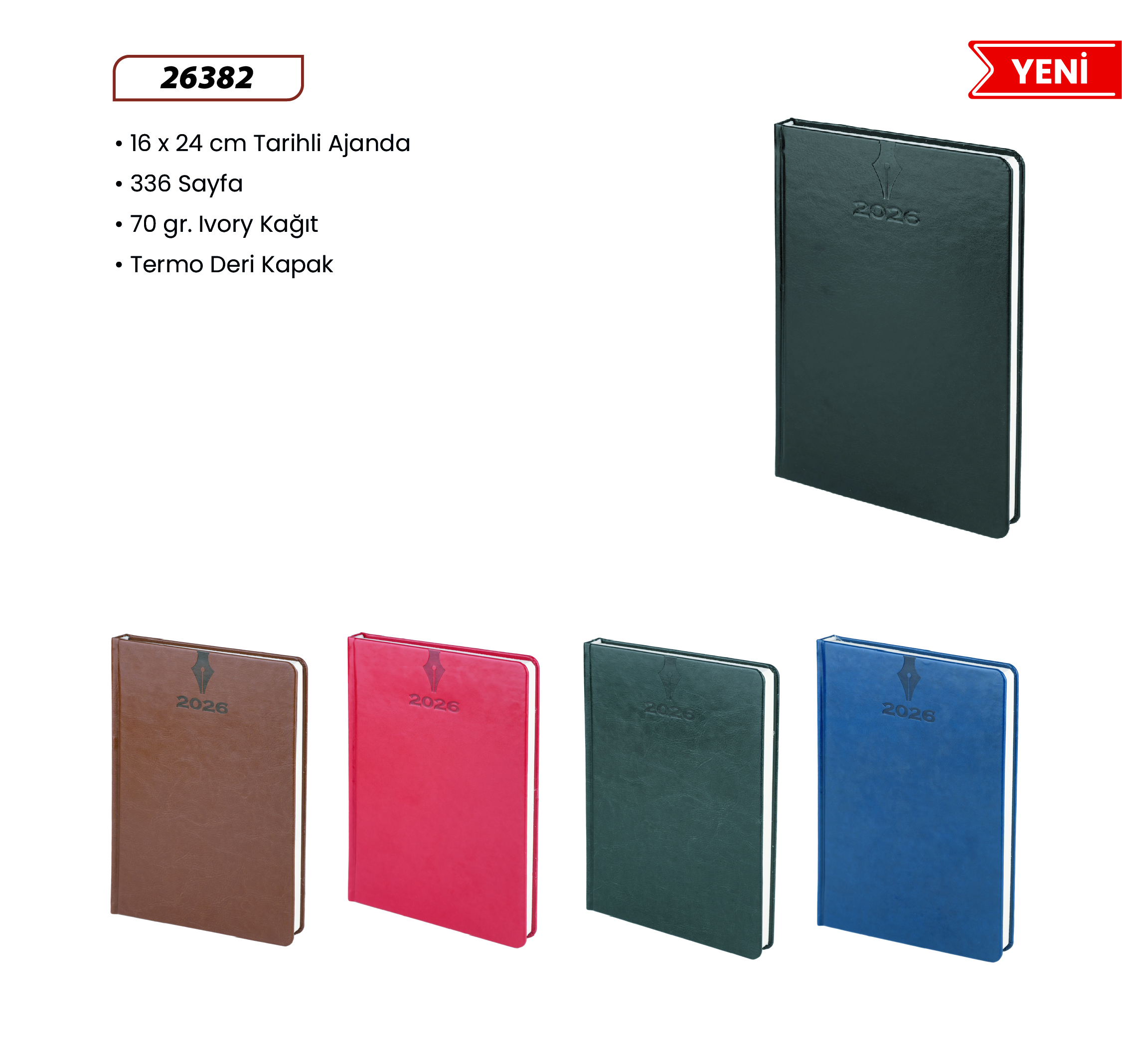 • Ajanda • 16×24 cm • Termo Deri • 336 Sayfa, • Sıcak Baskı, UV • Kalemlik • 70 gr.