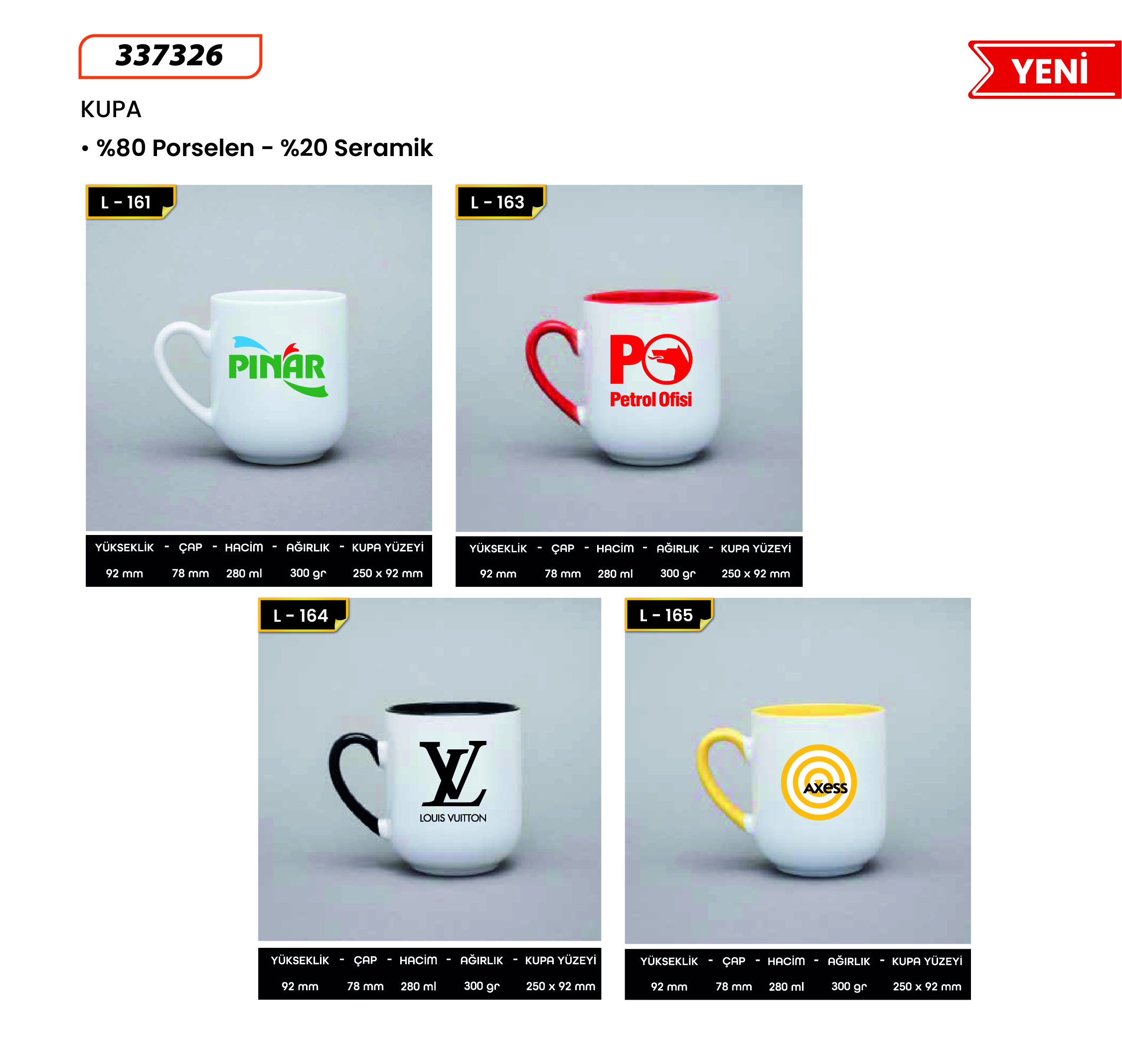 128919 Promosyon Kupa * S – Seramik kupa * P – Porselen kupa
