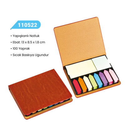 • Yapışkanlı Notluk • Ebat: 23×10.5×1.8 cm • 100 Yaprak • Sıcak Baskıya Ugundur