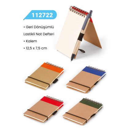 • Geri Dönüşümlü Lastikli Not Defteri • Kalem • 12,5 x 7,5 cm