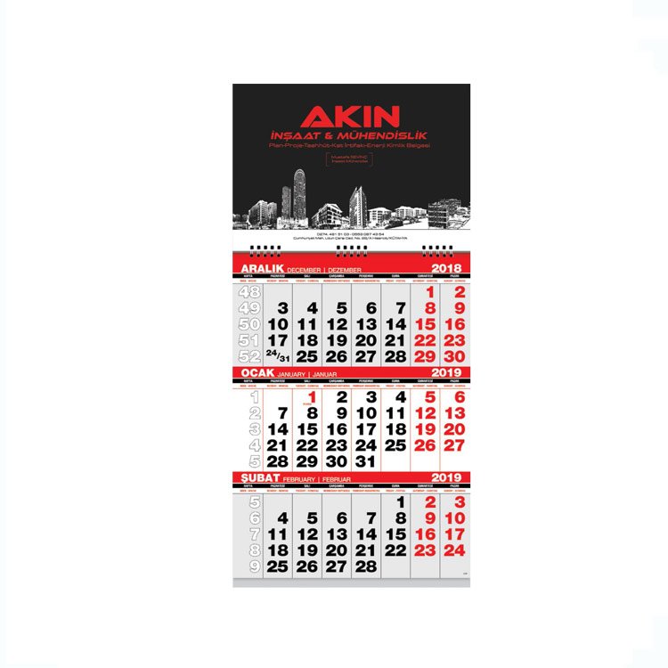 * Takvim: 31 x 63cm