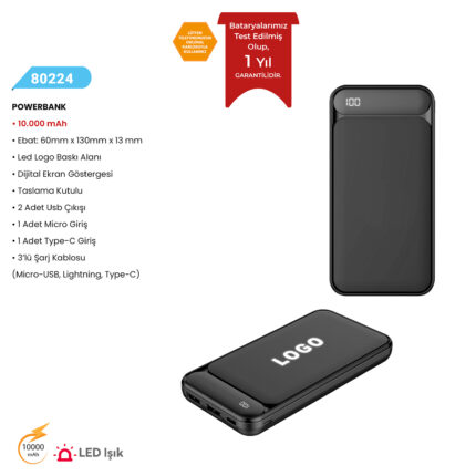 POWERBANK 10.000 mAh Ebat: 60mm x 130mm x 13 mm Led Logo Baskı Alanı Dijital Ekran Göstergesi Taslama Kutulu 2
