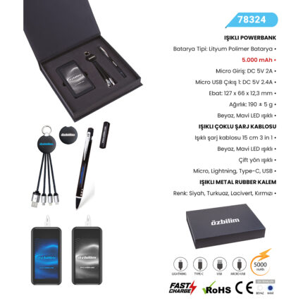 IŞIKLI POWERBANK Batarya Tipi: Lityum Polimer Batarya 10.000 mAh Micro Giriş: DC 5V 2A Micro USB Çıkış 1: DC 5V