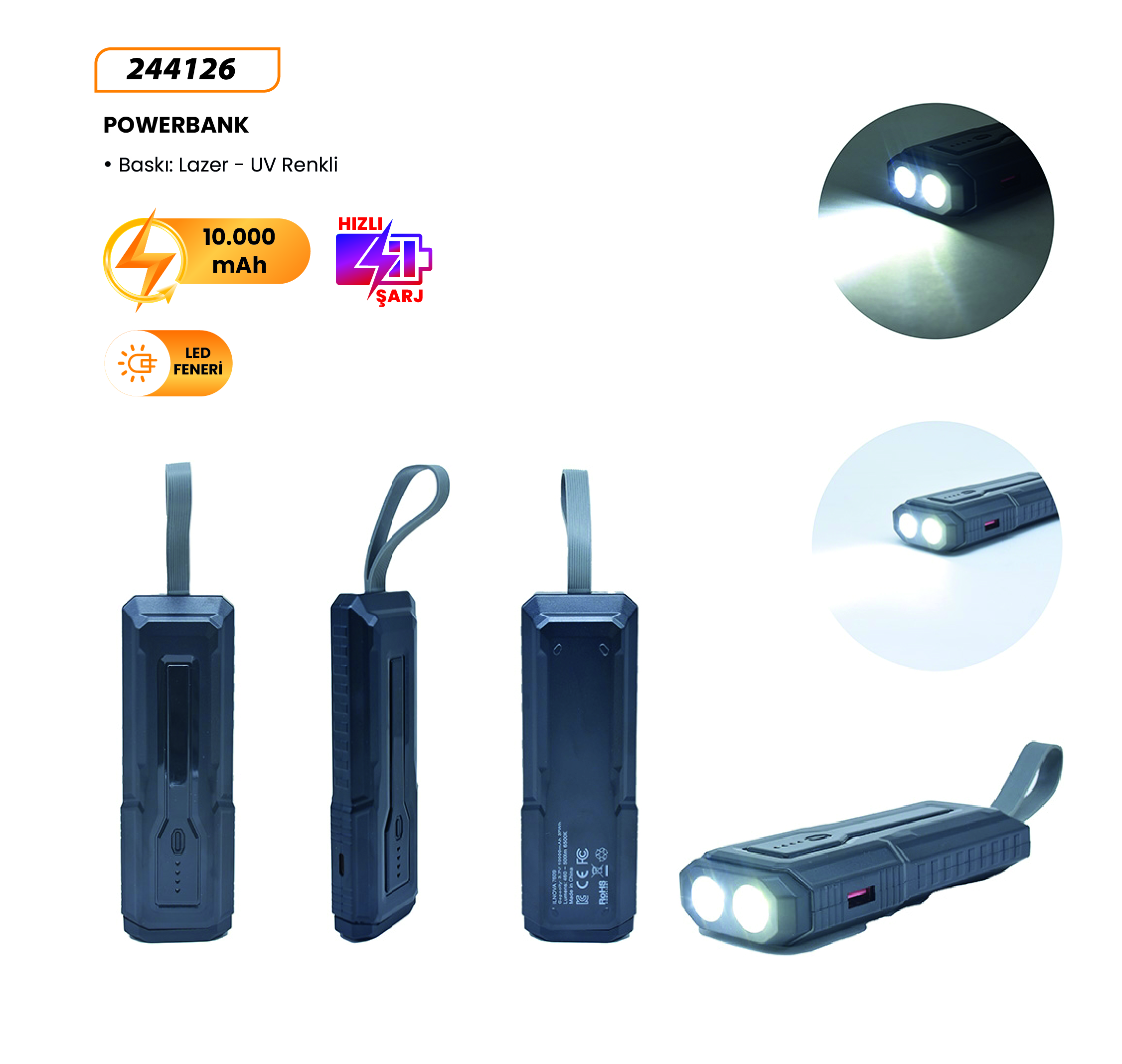 POWERBANK 10.000 mAh Ebat: 135 mm x 69 mm x 16 mm 4 Kademeli Led Göstergesi Plastik Gövde 2 Adet