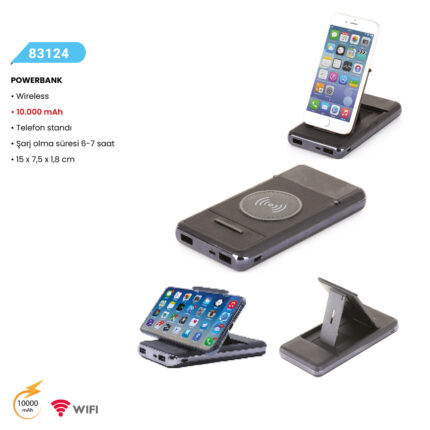 POWERBANK Wireless 10.000 mAh Telefon standı Şarj olma süresi 6-7 saat 15 x 7,5 x 1,8 cm