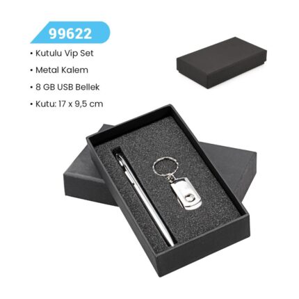 • Kutulu Vip Set • Metal Kalem • 8 GB USB Bellek • Kutu: 17 x 9,5 cm