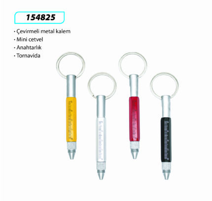 Çevirmeli Metal Kalem Mini Cetvel Anahtarlık Tornavida