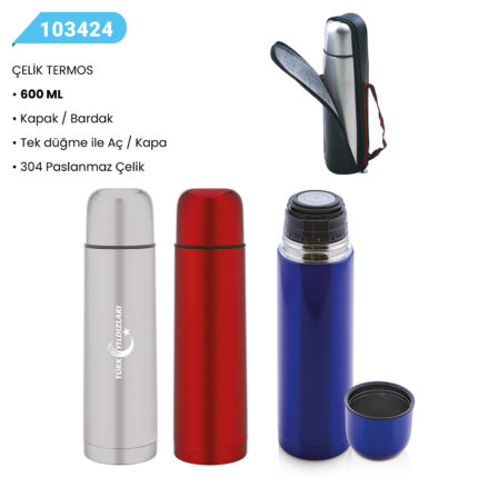 600 ml Kapak/bardak Tek düğme ile aç/kapa 304 paslanmaz çelik