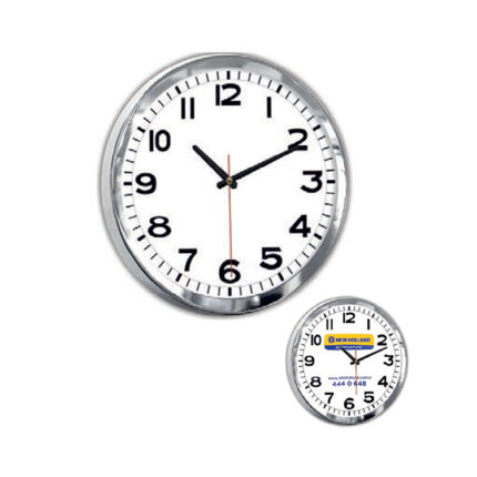 108418 Promosyon Krom Duvar Saati / Kuşe Kadran * 40cm * Kuşe baskılı kadran * Metal çerçeve * Sessiz akar