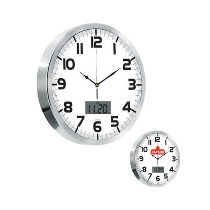 108618 Promosyon Duvar Saati / Kuşe Kadran * 36,5cm * Dijital göstergeli * Paslanmaz metal * Sessiz akar mekanizma *