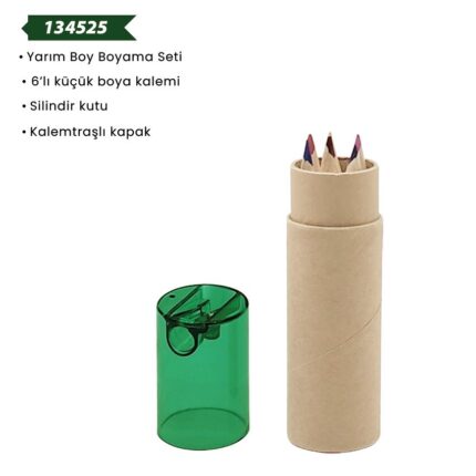 Yarım Boy Boyama Seti * 6 lı küçük boya kalemi * Silindir kutu * Kalemtraşlı kapak
