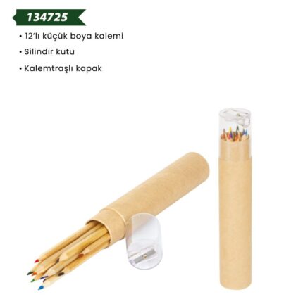 * 12 li küçük boya kalemi * Silindir kutu * Kalemtraşlı kapak