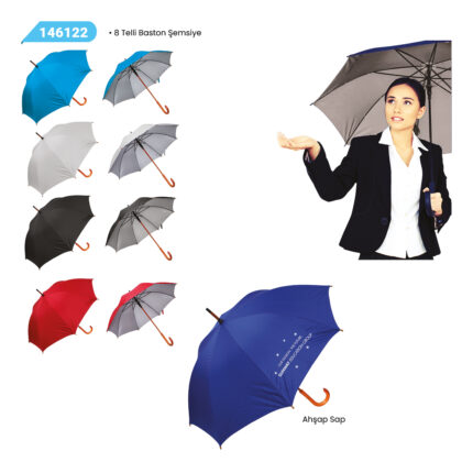 132418 Promosyon Ahşap Saplı Şemsiye * Baston tipi * 8 panelli