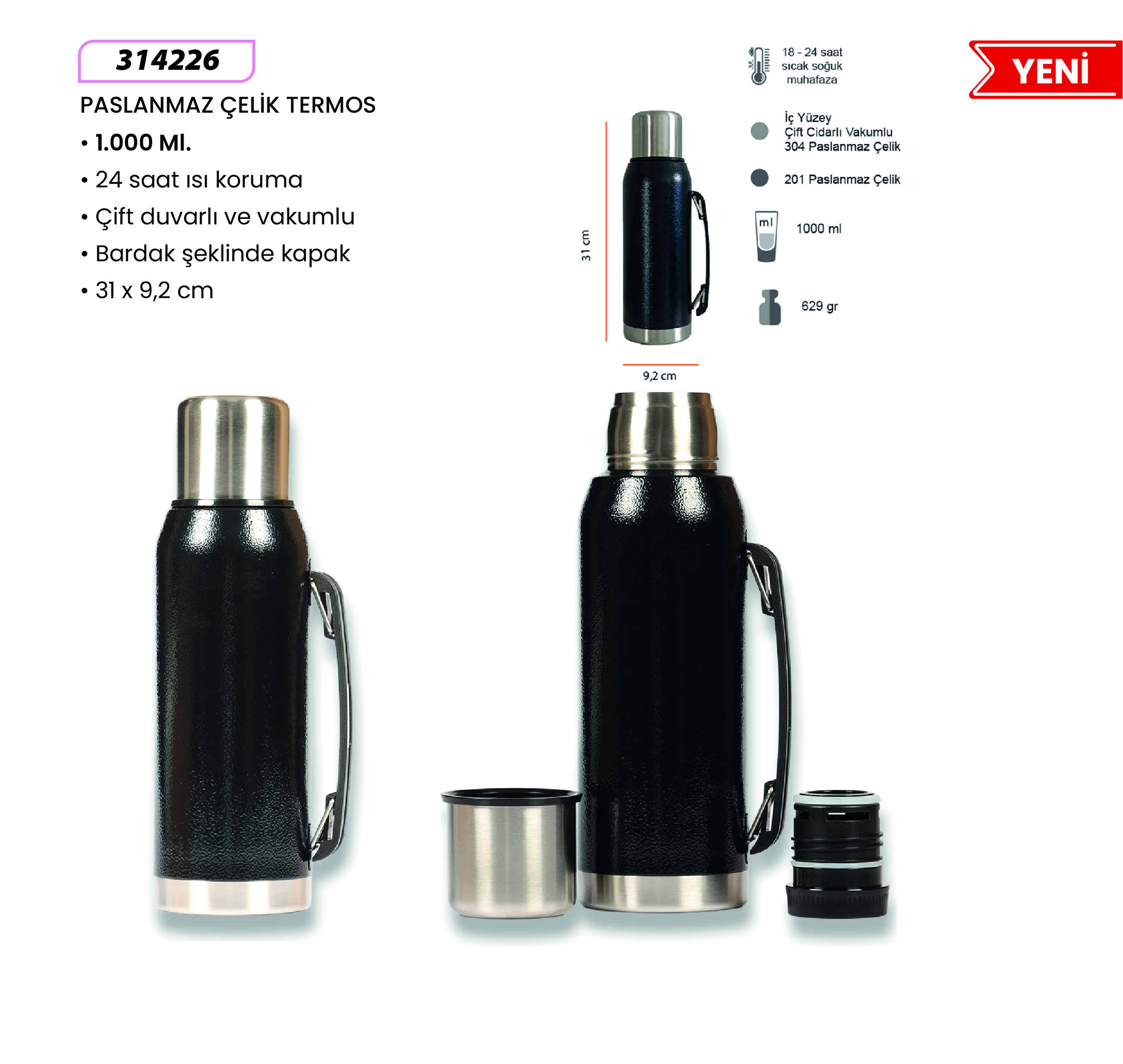 500 ML İç dış çelik malzemeden üretilmiştir Koku yapmaz, sağlıklıdır Sızdırmaz Ergonomik gövde