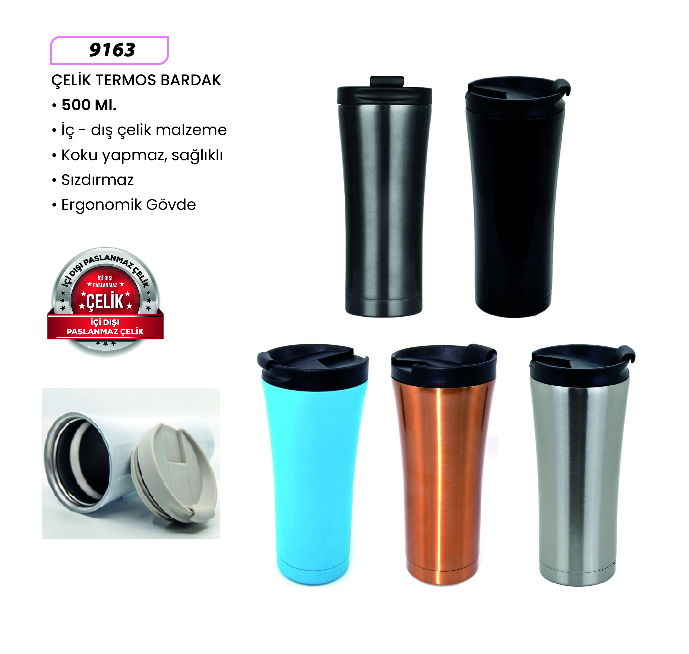 500 ml İç dış çelik malzemeden üretilmiştir Koku yapmaz, sağlıklıdır Sızdırmaz Ergonomik gövde